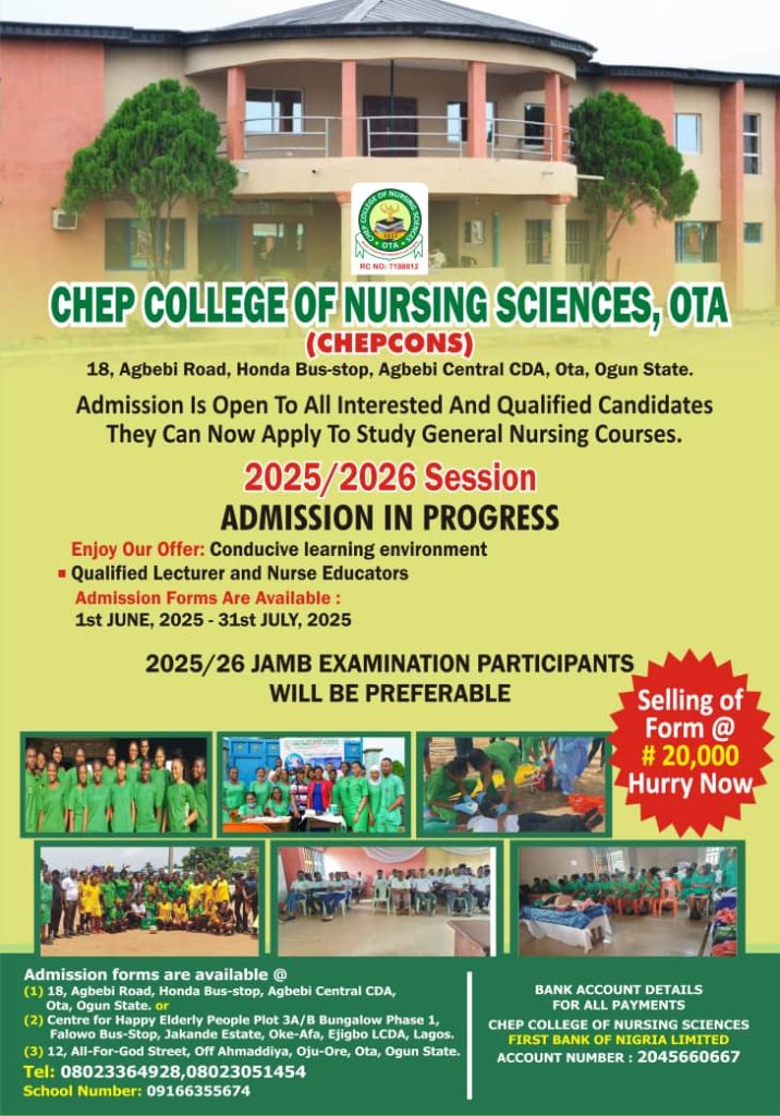 These are other progrmmes on offer with the approval of the Nursing and Midwifery Council of Nigeria and the relevant Ministries.